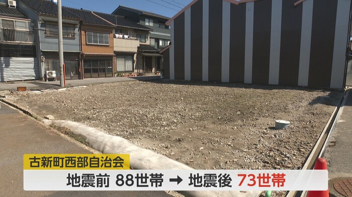 古新町西部自治会の佐竹正会長(76)によると、88世帯のうち液状化で家が傾くなどの被害を受け、15世帯が町を離れたという。