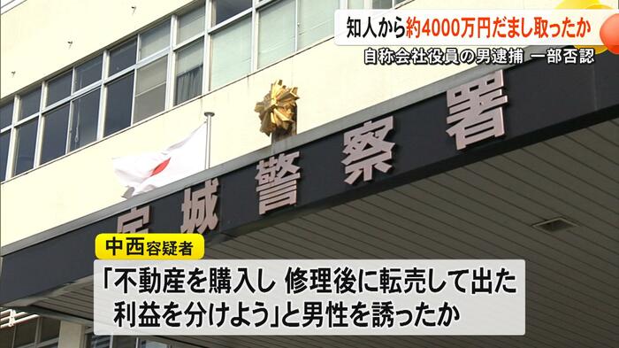 中西容疑者が土地や物件を購入した形跡はないものの、男性に対し、「不動産を購入し、修理後に転売して出た利益を分けよう」と誘っていたとみられている。警察が詳しい状況を調べている。