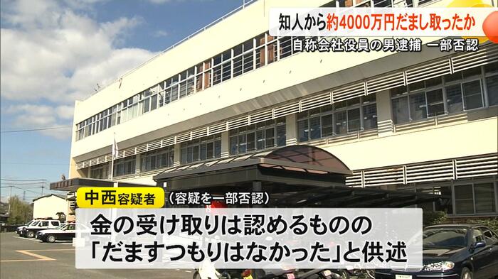 2023年に知り合いの男性から不動産の売買名目で、約4000万円をだまし取った疑いで、熊本市南区に住む自称会社役員の男が逮捕された。男は警察の調べに、「だますつもりはなかった」と供述し、容疑を一部否認しているという。