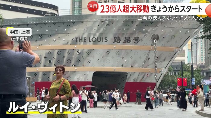 上海にある高級ブランド「ルイ・ヴィトン」の巨大なクルーズ船型の店舗の前は、多くの人でにぎわっていた。“映えスポット”としても人気があり、写真を撮りに来る人が絶えないという。