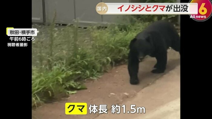 一方、午前6時ごろに秋田・横手市で撮影された映像には、のっそりと出てくる体長約1.5メートルのクマの姿が捉えられていました。