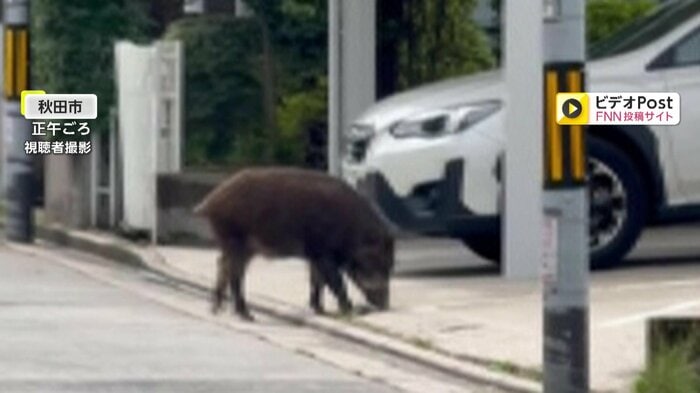 1日正午すぎ、秋田市で視聴者が撮影した映像には、餌を探しているのか、イノシシ1頭が住宅街を悠然と歩く様子が映っています。