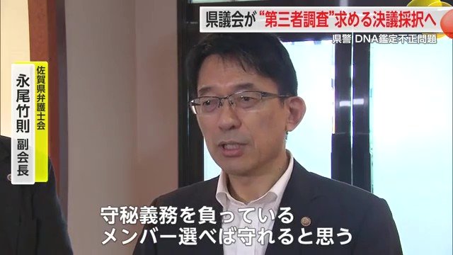 これに対し佐賀県弁護士会の永尾竹則副会長は、「守秘義務を負っているメンバーを選べば、それで済むというか、それで守秘義務は守れると思う。危惧されるような問題はないと思う」と述べ、かたくなに「第三者による調査は不要」と主張する県警の見解に反論した。