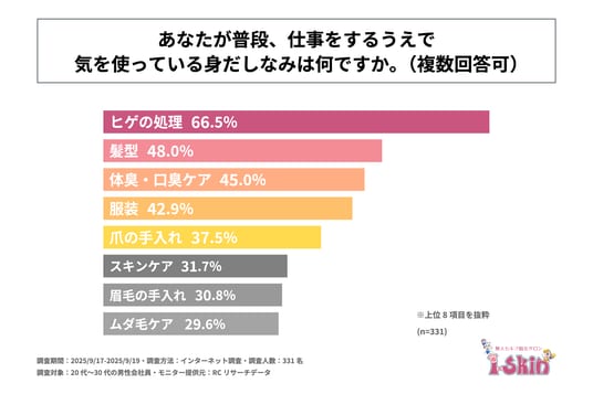 20代~30代の男性会社員の7割以上が、男性のムダ毛ケアはビジネスマナーのひとつであると考えている!i-Skin合同会社が「若手男性会社員の身だしなみとムダ毛ケアに関する調査」を実施!