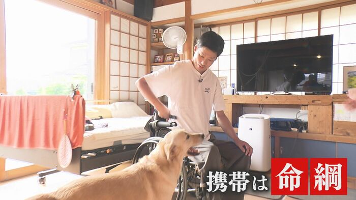 国の指定する難病『筋ジストロフィー』を患っている福岡・久留米市の久原貫太さん(35)。2年前に補助犬を迎えた。
