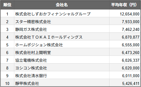 株式会社SalesNow(本社:東京都渋谷区、代表取締役:村岡功規、以下「当社」)は、国内540万社の企業情報を完全網羅した日本最大級のデータベース「SalesNow DB」より、上場企業を対象とした「市区町村別の平均年収ランキング」を発表しました。本リリースでは、各都市別のデータをもとに、今回は「静岡市に本社を置く企業」を対象に、平均年収にフォーカスしています。