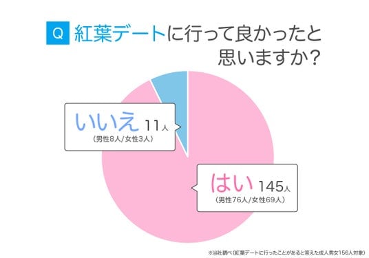 アンケートの結果、「綺麗な景色が楽しめるから紅葉デートに行って良かった」という意見が多く寄せられました。