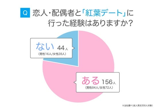 成人男女200人に、恋人や配偶者と紅葉デートに行った経験はあるかどうか聞いたところ、7割以上の人が「ある」と回答しました。