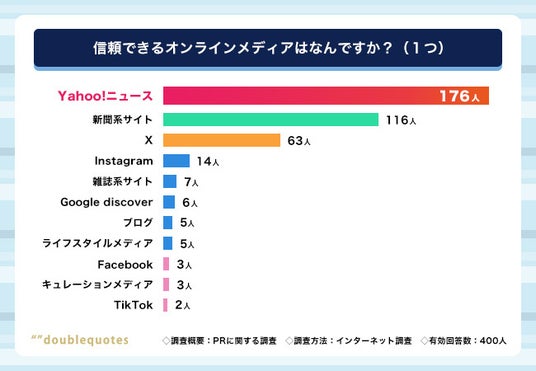 ・信頼できるオンラインメディア、全世代で1位は『Yahoo!ニュース』(176人)、2位『新聞系サイト』(116人)、3位『X』(63人)
