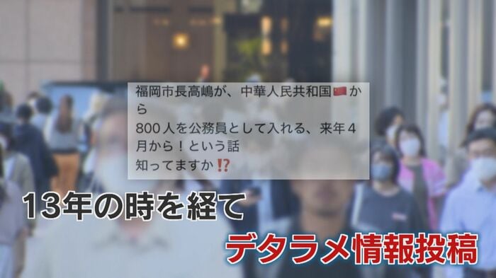それが、13年の時を経て、突然『福岡市が中国人800人を職員にする』というデタラメな情報が投稿され、これを信じてしまう人が続出してしまったのだ。