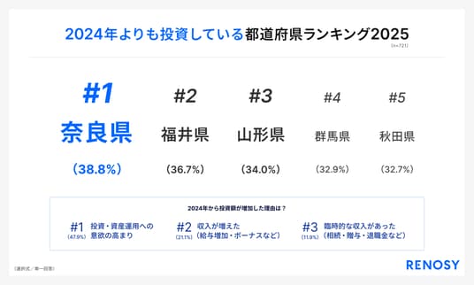 - 「2024年よりも投資している」1位は奈良県。投資額増加の理由は 「投資・資産運用への意欲の高まり」