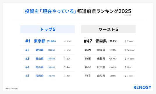 記載例:RENOSY調べ「47都道府県別の投資意識と実態調査2025」