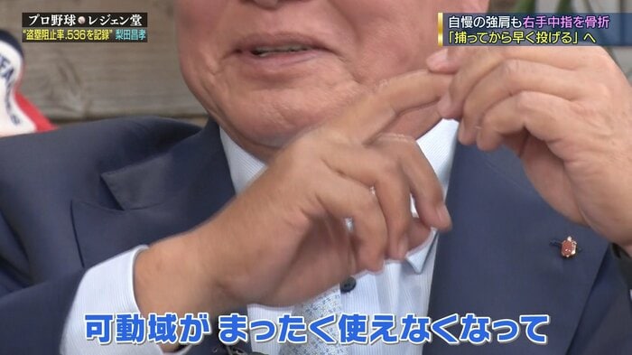 それがね、僕は骨折したんですよね。(右手を)亀裂骨折しましてね。ファウルチップが当たって、可動域がまったく使えなくなって。