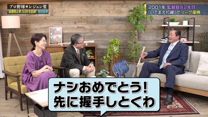 そうです。あの時仰木さんもね、人がいいというか悪いというか。まだ試合始まる前ですよ。「ナシおめでとう!」って。「先に握手しておこうや」って。一番先に握手したのが仰木さんなんです。