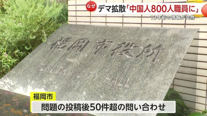 問題の投稿があって以降、福岡市に50件を超える問い合わせがあったという。
