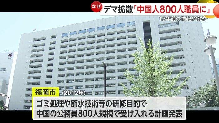 実は福岡市では2012年、ごみ処理や節水技術などの研修目的で、中国の公務員を800人規模で受け入れる計画を発表していた。