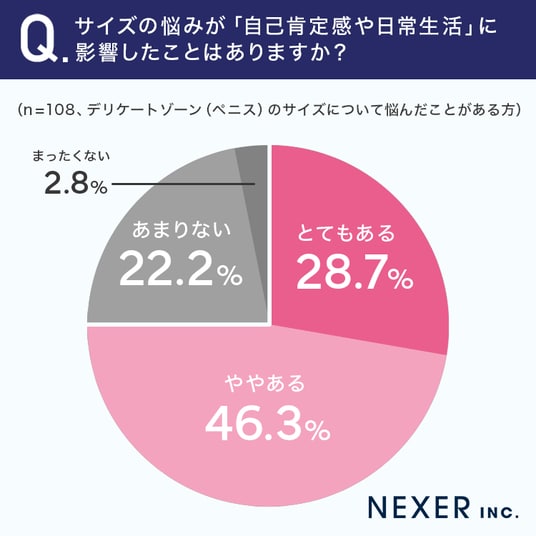 サイズの悩みが自己肯定感や日常生活に影響したと答えた人は、約7割以上にのぼりました。