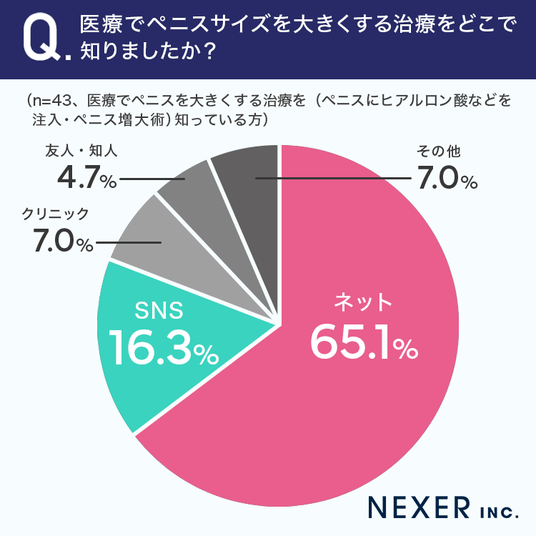 ペニスサイズを大きくする治療を知ったきっかけとして最も多かったのは「ネット」で、全体の6割超を占めました。