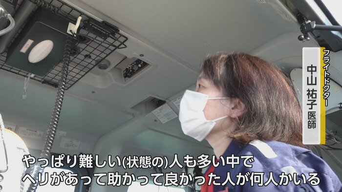 フライトドクターの中山祐子医師は「決してみんながみんな、ヘリが必要な人ばかりではないけれど、その中でも時間が命のような人も何人かいる。その時のためにも早く接触する訓練や準備はするべき」と語る。