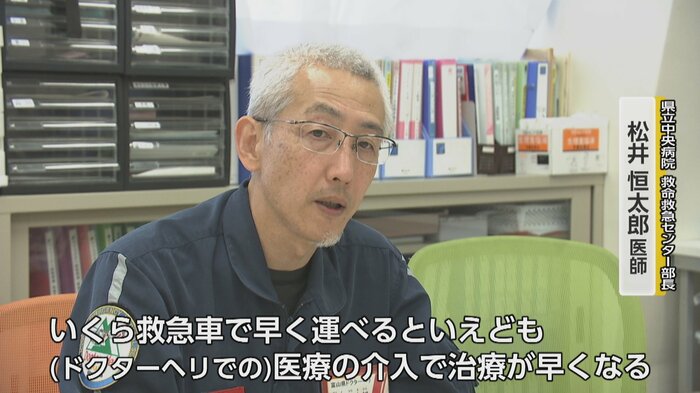 富山県立中央病院救命救急センター部長の松井恒太郎医師はこう語る。「いくら救急車で早く運べると言えども、医療の介入によって治療が早くなる。医療者が現場に行くことによって診断が早くなり、患者をどの病院に連れていけばいいかという判断も早くなる利点がドクターヘリにはある」