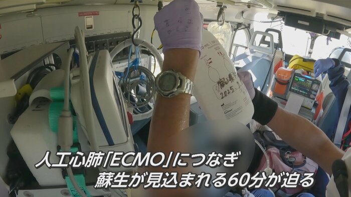 「60分以内が行けるかどうか。ECPRは適応だと思いますが結構厳しい」。医師たちは救急車に同乗しながら、患者の心停止からの経過時間と、人工心肺(ECMO)につなぐ限界時間を考慮して判断を重ねていく。