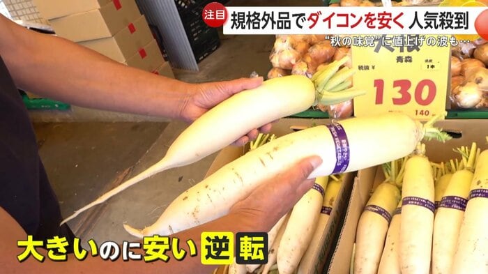 大きいダイコンの方が50円も安く手に入るという、“逆転現象”が起きていた。