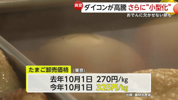 値上げの波は、同じくおでんに欠かせない“たまご”にも及んでいた。