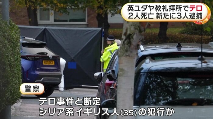 イギリスのユダヤ教の礼拝所で10月2日、男が車で突っ込み刃物で襲撃する事件があり2人が死亡した。