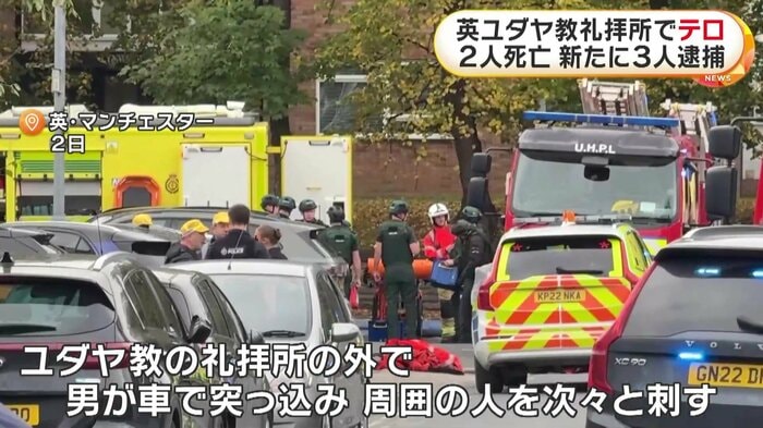 イギリス北部マンチェスターにあるユダヤ教の礼拝所で2日、男が外にいた人たちに車で突っ込み周囲にいた人を次々と刺した。