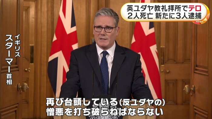 イギリスではユダヤ教徒を狙った事件が増えていて、スターマー首相は全国のユダヤ礼拝所に警察官を追加配備するとしている。