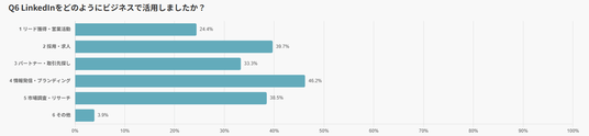 この結果から、日本国内でもLinkedInは個人利用にとどまらず、ビジネスの現場で積極的に活用されていることが分かります。