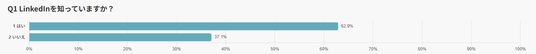 調査結果によると、日本国内のSNSユーザー256名のうち161名が「LinkedInを知っている」と回答し、全体の62.9%を占めました。