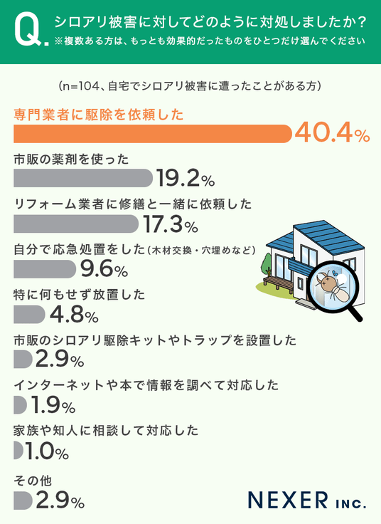 ■40.4%が、シロアリ被害を受けて「専門業者に駆除を依頼した」