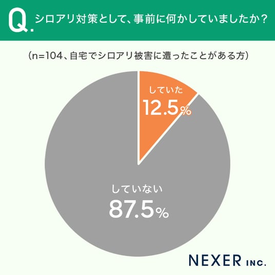 シロアリ被害に遭ったことがある方のうち、被害前に「対策をしていた」のはわずか12.5%でした。