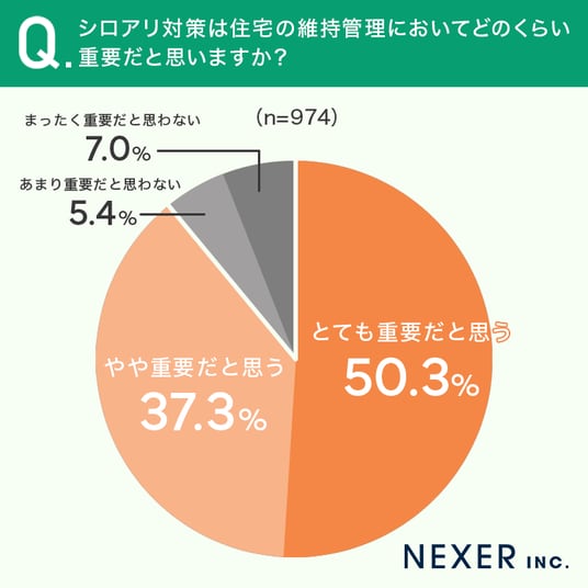 次に、シロアリ対策は住宅の維持管理で重要だと思うか聞いてみました。