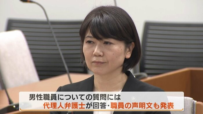 男性職員についての質問には代理人弁護士が答え、職員の声明文を発表したといいます。