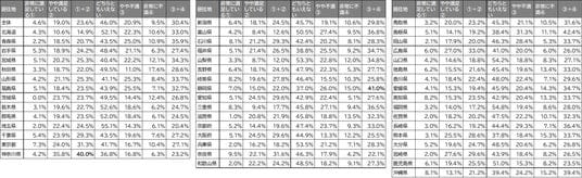 「やや不満」+「非常に不満」と回答した人は全国平均で30.4%。島根県や静岡県では10ポイント以上上回っていました。