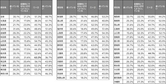 歯科メインテナンスへの通院(通っている+行くようにしている)は全国平均で51.3%。最も多かったのは群馬県(63.3%)でした。