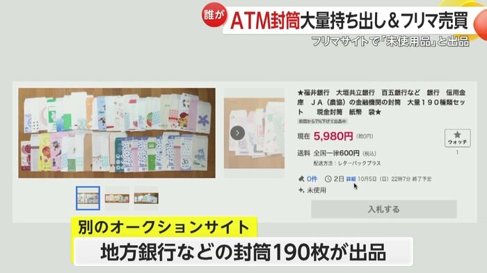 銀行の封筒を大量持ち出しか。いま、フリマサイトでの封筒の売却行為が物議を醸している。