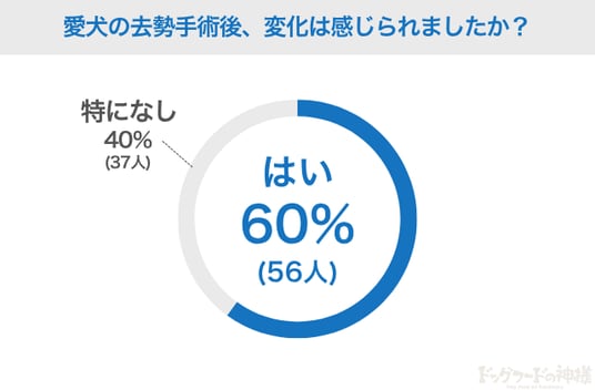 去勢手術後の変化について尋ねたところ、「変化を感じた」と答えた飼い主さんは6割にのぼりました。
