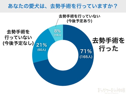 今回のアンケートでは、飼い主さんの約7割が「愛犬は去勢手術を受けている」と回答しました。
