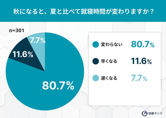 ・季節変化は「変わらない」が8割だが、約1割は早寝になる