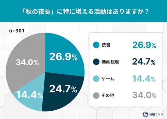 ・秋の夜長に増える活動:「読書」(26.9%)、「動画視聴」(24.7%)が上位