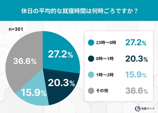 →休日も「23時台」が最多。深夜1~2時や2時以降に寝る割合は平日より増加。