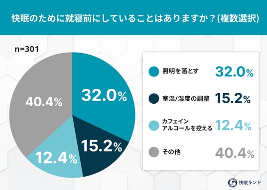 ・就寝前の工夫:「照明を落とす」(32.0%)が最多