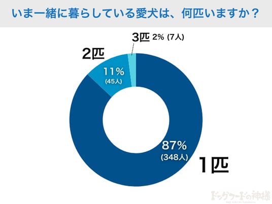 飼い主さんに「現在一緒に暮らしている犬の数」を尋ねたところ、87%が「1匹のみ」と回答。