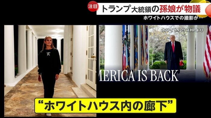 トランプ大統領の18歳の孫娘が自身のアパレルブランドを立ち上げ、その宣伝用写真をホワイトハウス内で撮影し「公的施設を私的利益に使った」と批判が噴出している。ホワイトハウスは「撮影は禁止されておらず、政府の承認もないので問題はない」とコメントしている。
