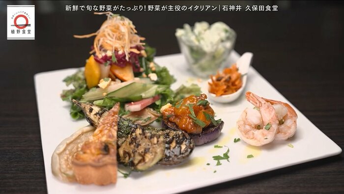 メニューは採れたて野菜を使ったナスのグラタンやトマトを丸ごと湯煎したサラダのほか、野菜に肉や魚を合わせた久保田さんのセンスと想いが詰まった料理が楽しめる。野菜の持ち味を引き出した一皿一皿は、訪れる人の心もお腹も満たしていく。