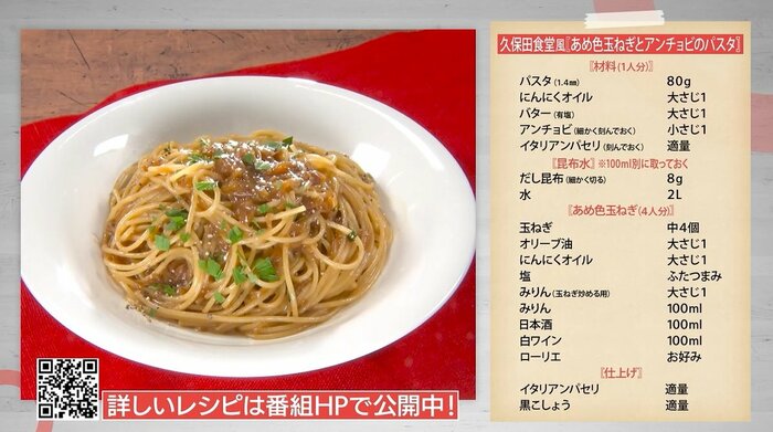 (7)昆布水(2L)と塩(大さじ2/分量外)を入れた湯でパスタを袋の表示時間通りにゆでる。