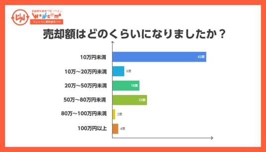 アンケートによると、結婚指輪を売却した際の金額は 「10万円未満」が最多の62票 となりました。